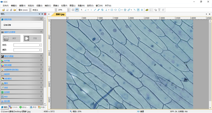 | 图像叠加去噪 | Eoc View图像叠加去噪功能引入先进的图像匹配技术,用户只需录制自己待叠加图像的一小段视频,就能够在视频多帧图像之间存在位移、旋转及放大率改变的情况下叠加输出高保真的图像,简单易用. |