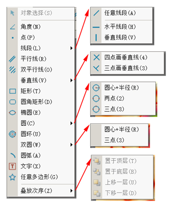 测量菜单主要用于图像的测量应用中。有了这些菜单项,用户即可以测量图像上的各种几何形状。Eoc View采用图层技术来实现这种测量,其优点在于不会破坏图像上的像素点。测量菜单以及其子菜单显示如下.